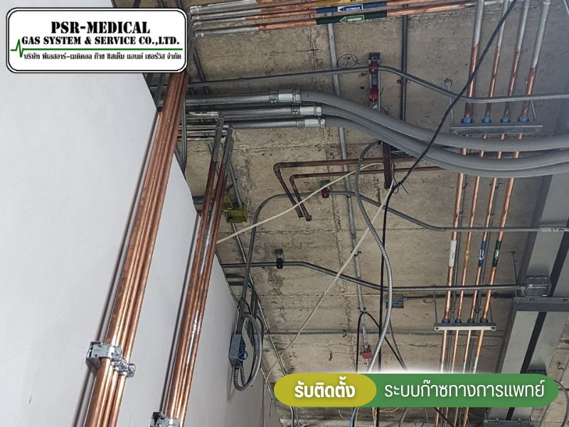 - งานติดตั้งระบบท่อก๊าซทางการแพทย์ระหว่างการก่อสร้างอาคาร